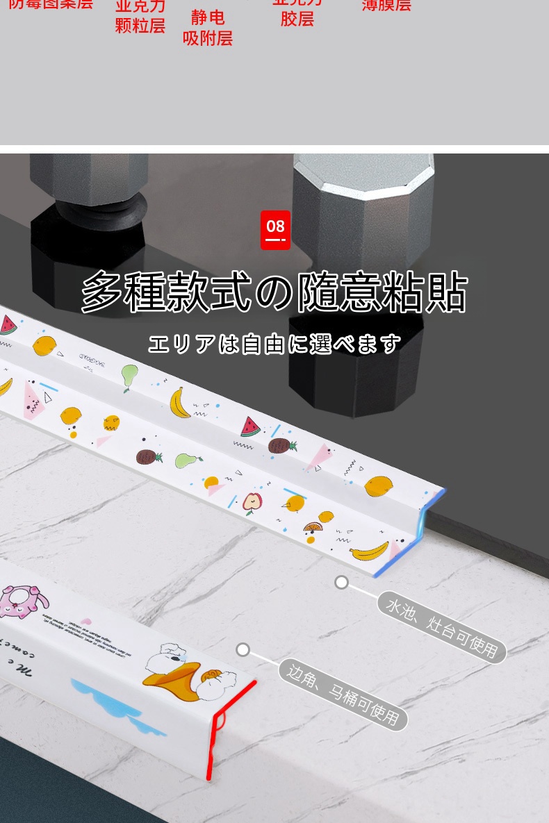 7分鐘前限時搶購 美縫貼防水防霉廚房水槽洗碗灶台封邊擋水條,衛生間馬桶邊緣縫隙貼 - 【98%客戶的選擇】5入組-NT$1150